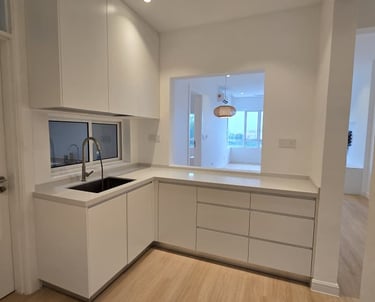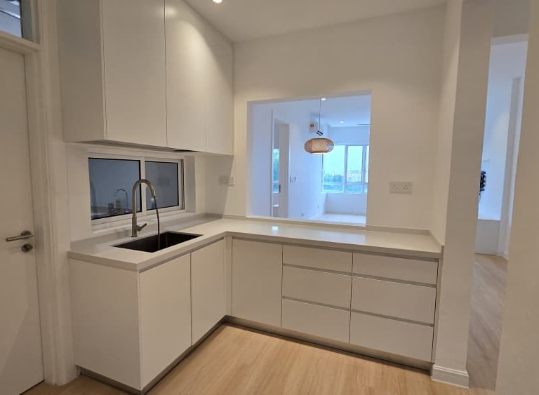 This is an apartment renovation project. We transformed a small space into something that feels spacious and works perfectly for everyday living. White seems to be our design forte—it makes the space look clean, elegant, and easy to live in.